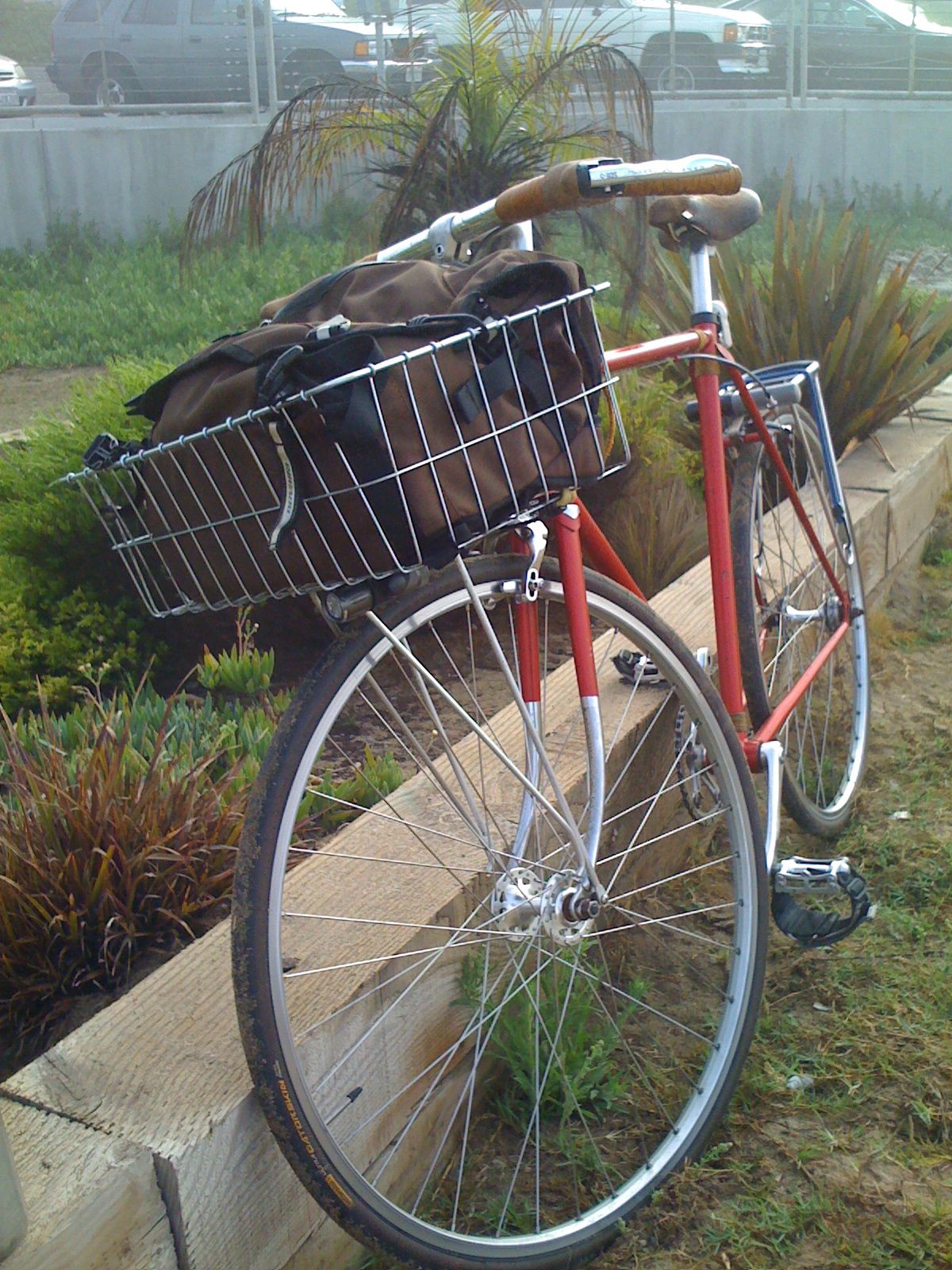 What does not look nice is the basket I put on the front of my bike. Yes I have gone all Rivendel and zipp-tied a big basket to an old aluminum rack on the front of my bike.